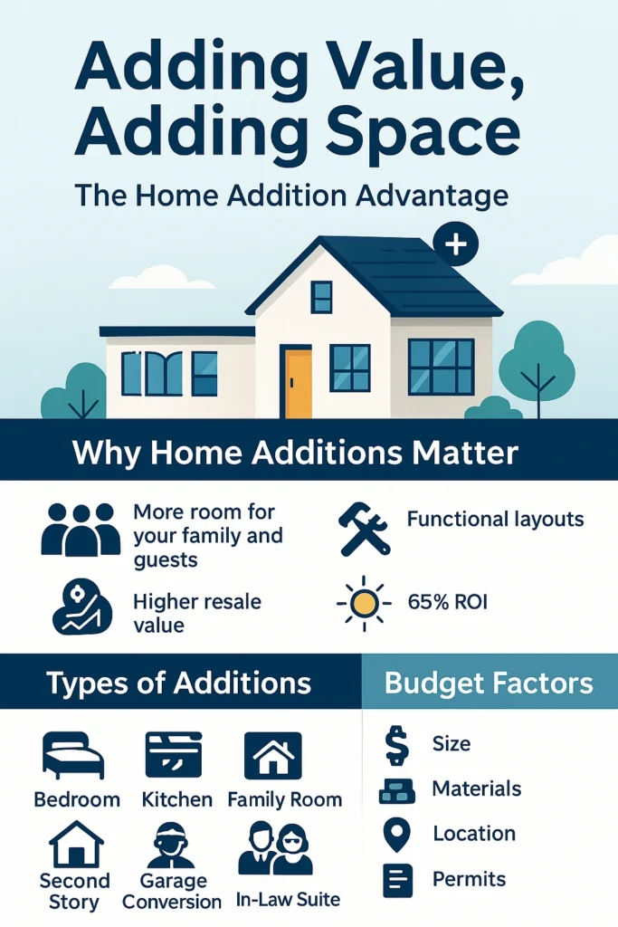 A home addition is not just about adding space. Itβs about creating comfort, improving function, and building long-term value. Whether you dream of a new bedroom, a larger kitchen, or even a second story, planning carefully ensures your investment pays off.