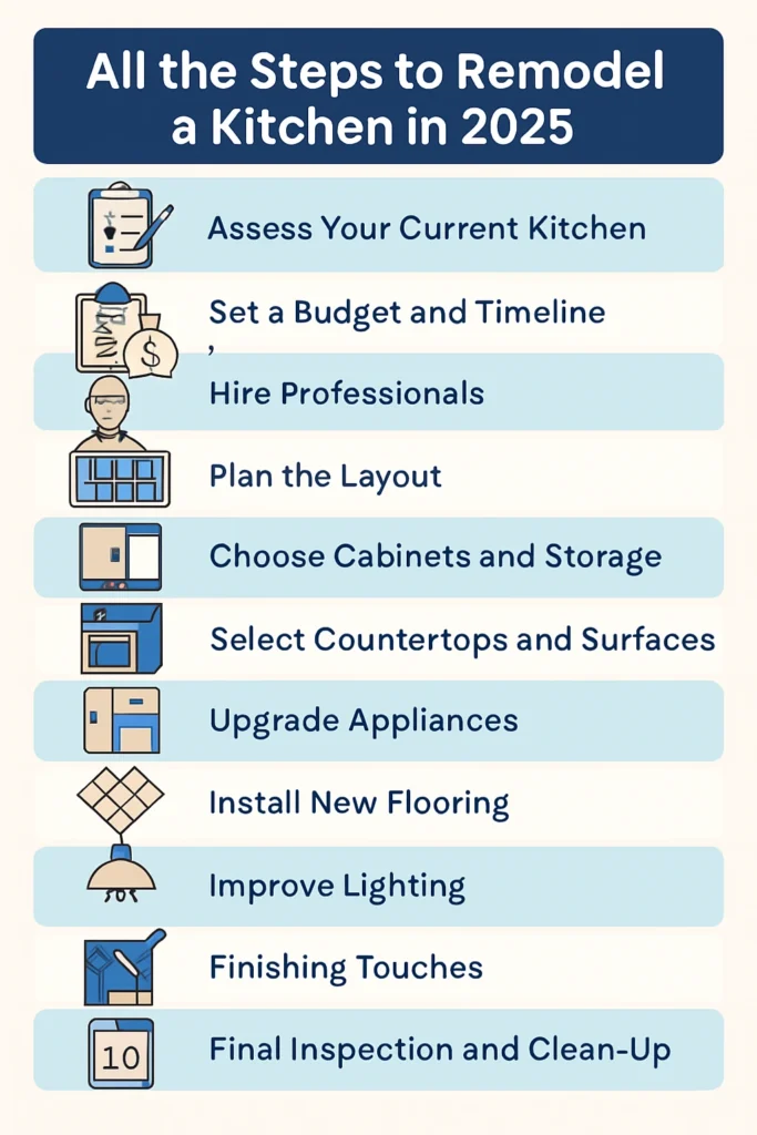 This guide will walk you through every stage — from planning and budgeting to design, installation, and finishing touches. By the end, you’ll know exactly how to transform your kitchen into a modern, efficient, and inviting space.