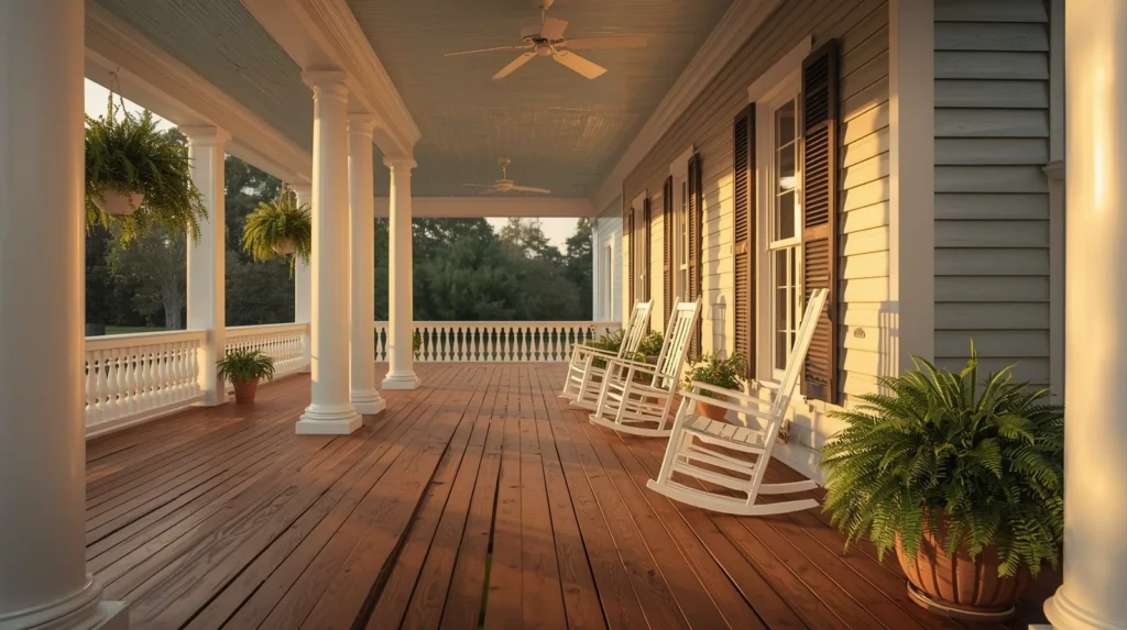 - Style Tip: Add hanging ferns, white rockers, and ceiling fans for that southern hospitality feel.