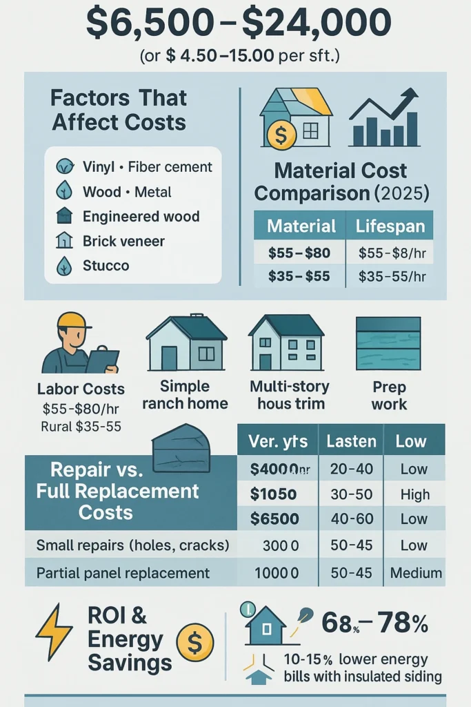 π‘ Key Insight: The biggest factors are siding material, labor rates, and whether additional repairs are needed.