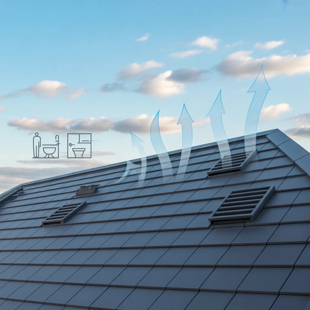 Roof tile vents are specialized roof tiles that look like normal tiles but contain hidden ventilation channels. They connect directly to extractor fans through ducting, allowing moist indoor air to escape outdoors safely.