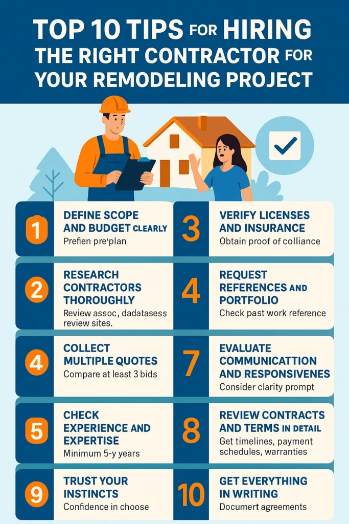 Thatβs why I created this guide: the top 10 proven tips for hiring the right contractor for your remodeling project. Each step is based on expert recommendations, industry statistics, and real homeowner experiences. Follow them, and youβll protect your time, money, and peace of mind.