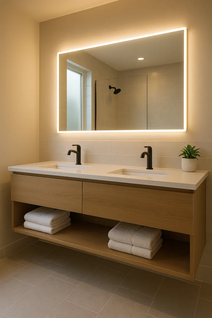 • Floating vanities: Mounted on the wall for a clean, spacious look.